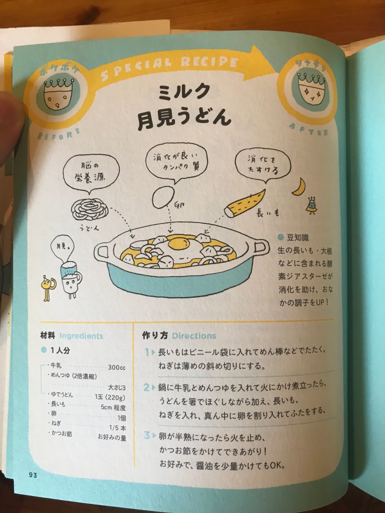 i found some book about milk and it was talking about milk combinations with other things like ketchup and vinegar (rip i know) but also had cool recipes including strawberry milk cocktails and milk with udon (pictured~)
